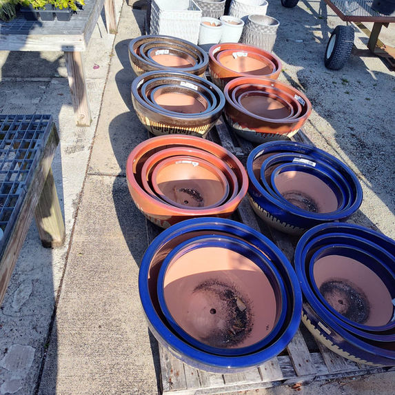 Our outdoor pottery selection is varied in size, shape and color.